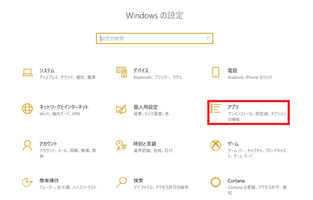 1.左下の検索バーに「設定」と文字を打ち、出てきた[設定アプリ]をクリックします。
