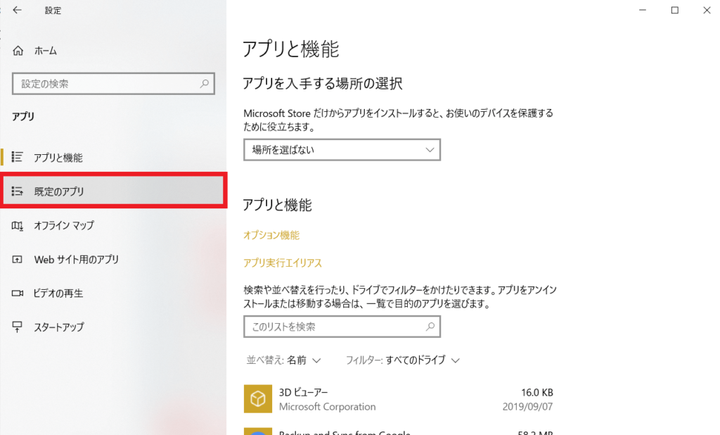 3.[既定のアプリ]をクリックします。