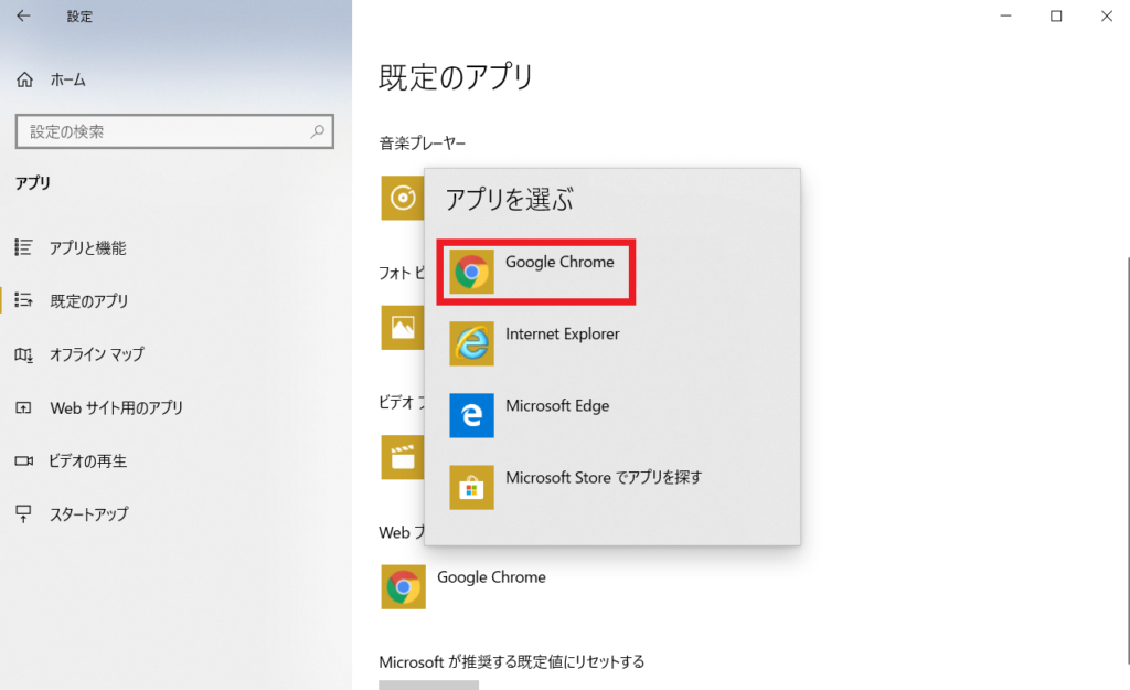 ①Chromeをデフォルト(既存)のブラウザに設定する