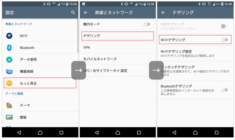 ①Wi-Fiテザリング
