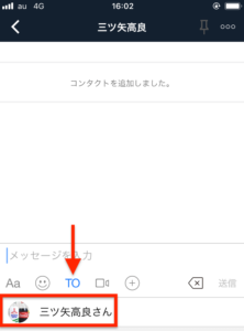送信すると、以下のように「TO」のついたメッセージを送ることができます。