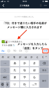 確認できたら、そのまま続けてメッセージを打ち込んでいきます。