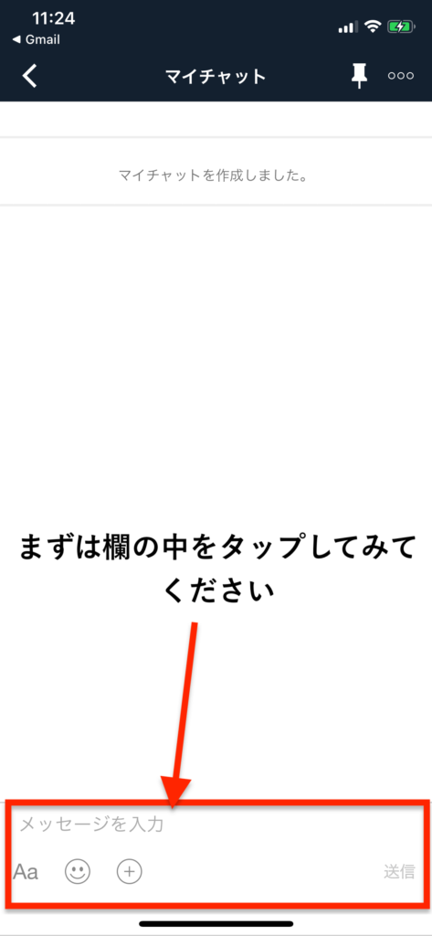 画面中央下部にある四角い箇所にメッセージを打ち込んでいきます。