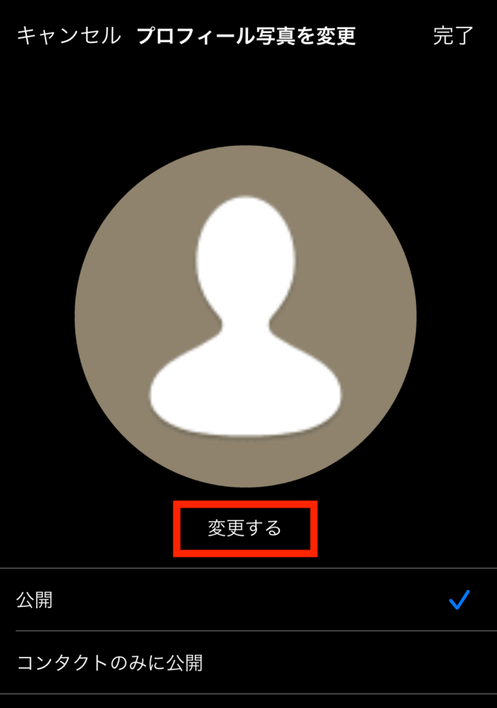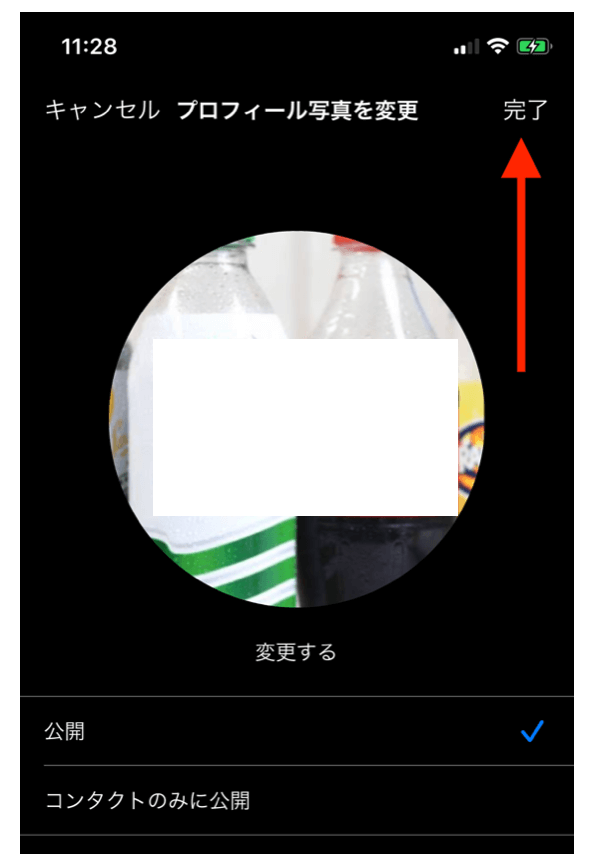 その後の画面で▼右上にある「完了」を押せばプロフィール画像が設定されます。