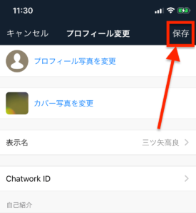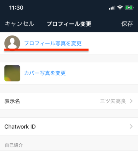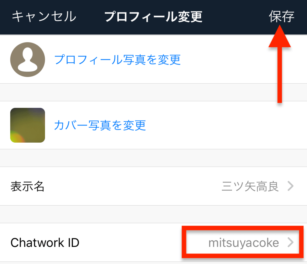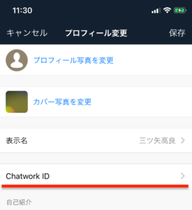 プロフィール変更画面の「Chatwork ID」をタップします。