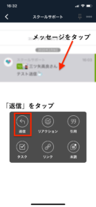 すると下部にメニューが表示されますので、「返信」をタップしてください。