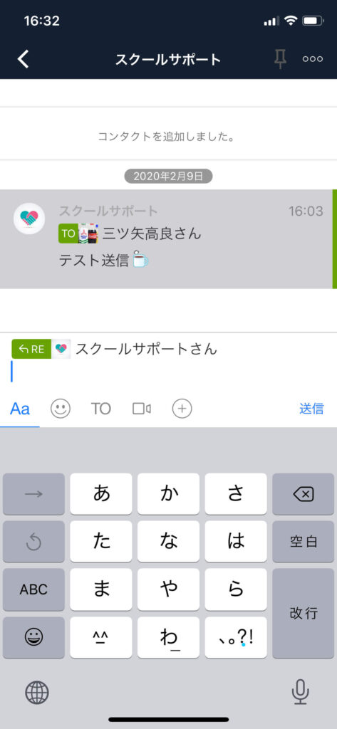 あとは今までと同様、メッセージを打ち込んで送信ボタンを押せばOKです。