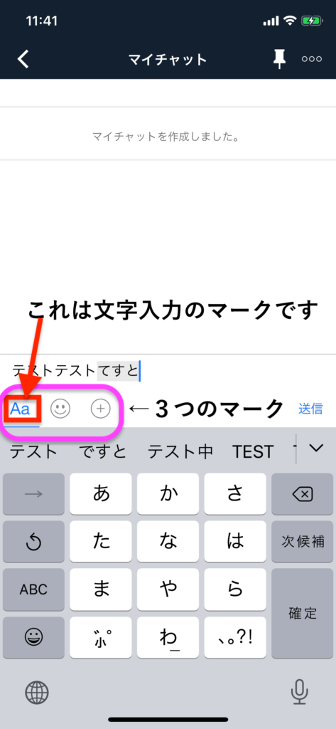 その中でも「Aa」のマークはテキスト入力です。通常の文字を打つ際に使用します。