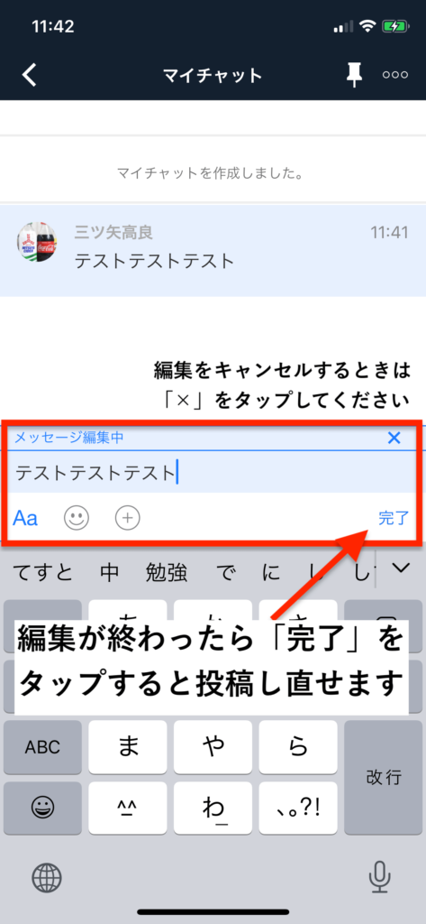 編集した後に「送信」を押せば、編集後のメッセージが反映されます。