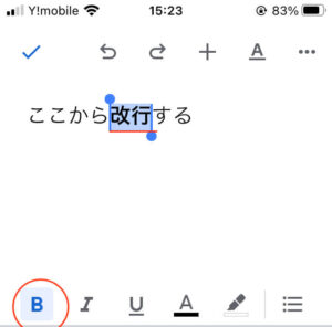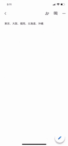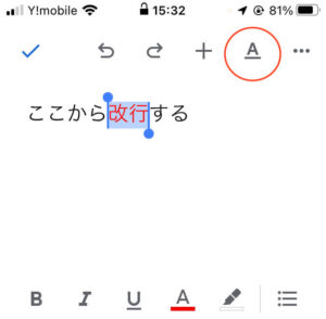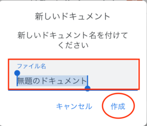 ドキュメント画面右下の円筆マークをタップすると文章を書いたり編集したりできるようになります。