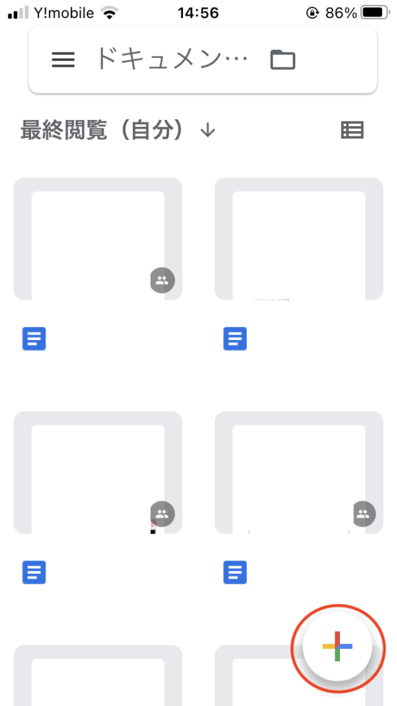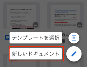 上記でインストールしたGoogleドキュメントのアプリを立ち上げて、以下の手順で新しいページを開いていきます。