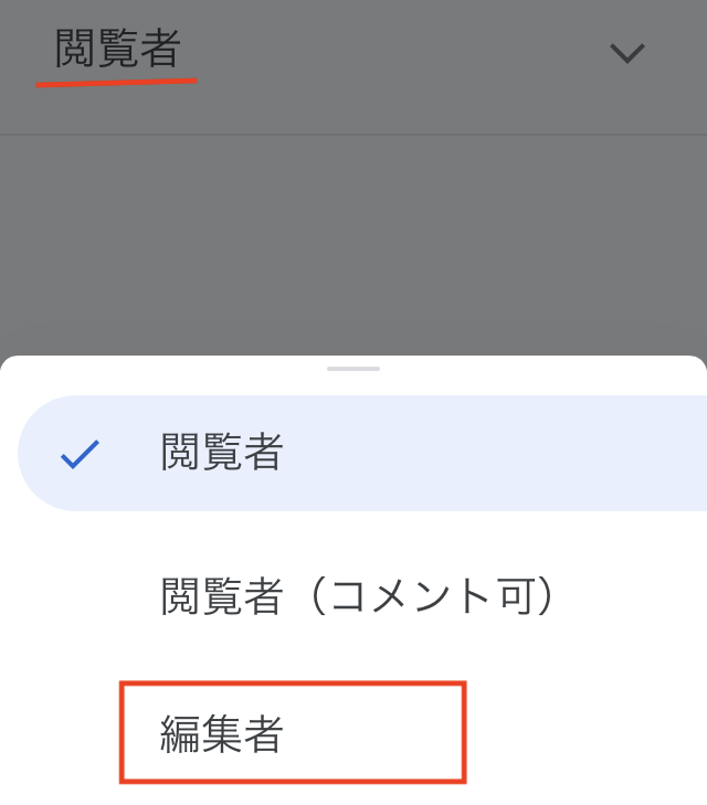 ⑦「リンクを知っている全員」の下の「閲覧者」を編集者に変更