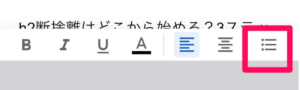 画面中央の右側にある下記マークを押せば箇条書きが挿入できます。