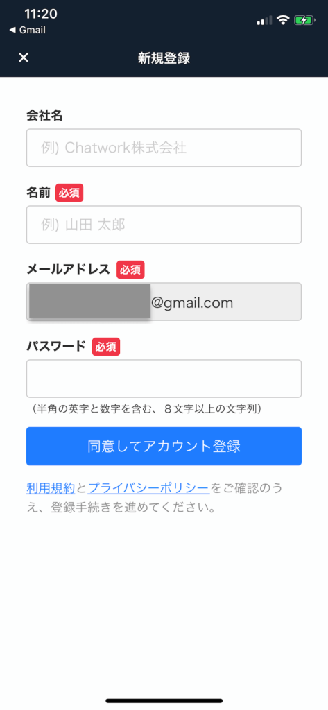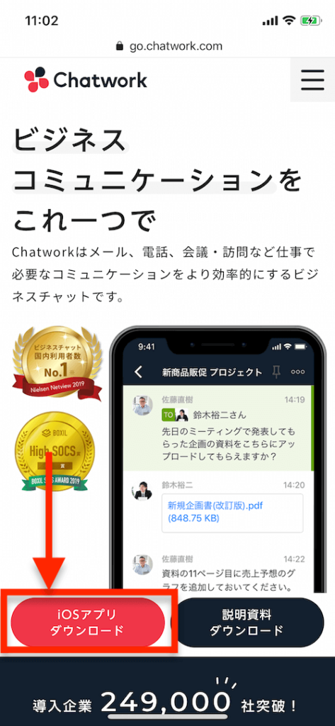 ①下記URLをタップしチャットワークのサイトを開く