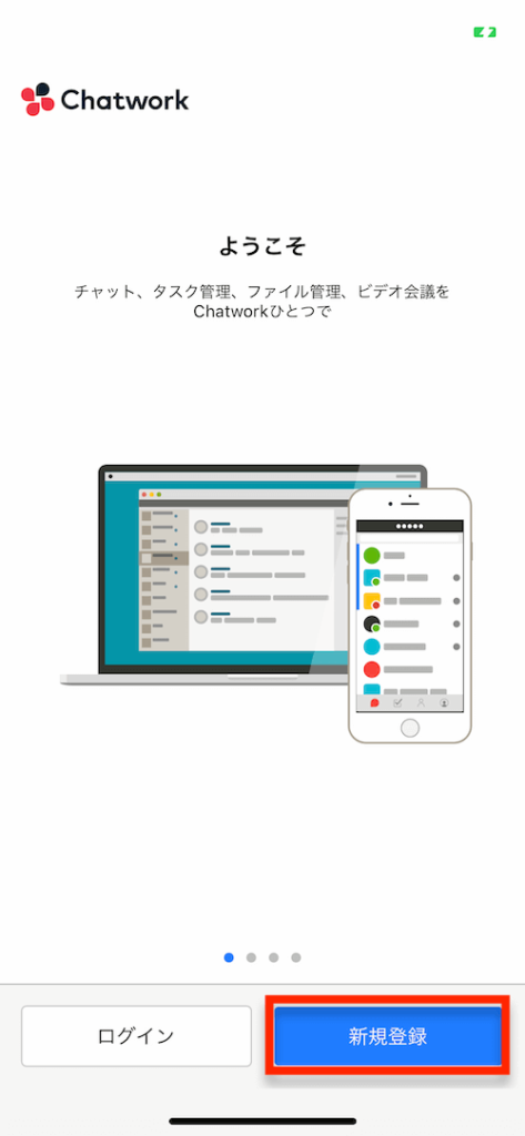 早速「チャットワーク を開く」をタップし、チャットワークを使いはじめましょう。