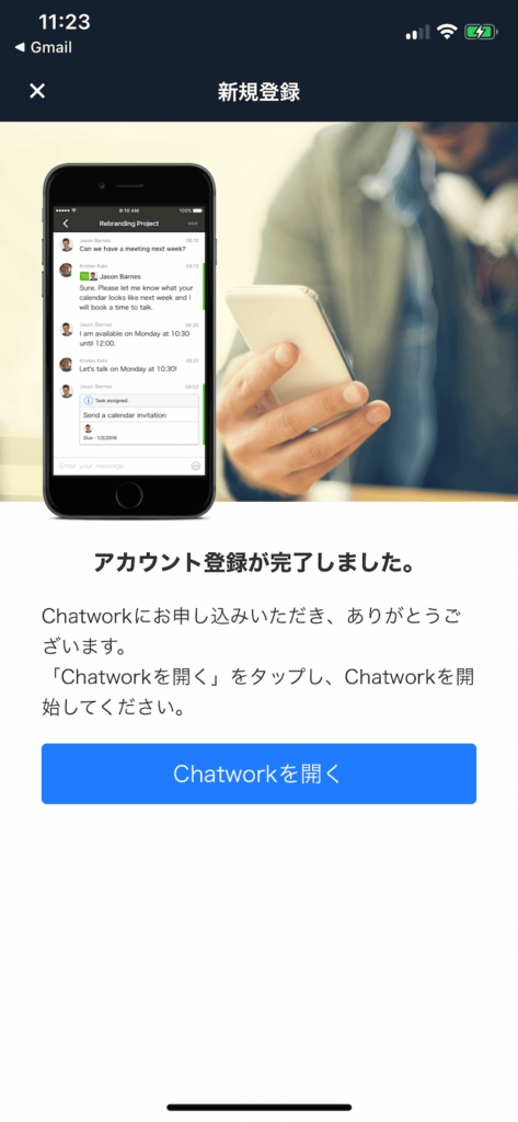 早速「チャットワーク を開く」をタップし、チャットワークを使いはじめましょう。
